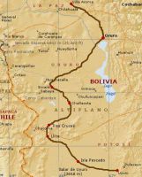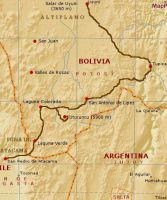 Maurizio è arrivato a Uyuni sabato 16 agosto, dove ha sostato un paio di giorni per recuperare le forze e ripartire per l'attraversamento del Salar de Uyuni 3650 m slm (vedi Mappa 2).